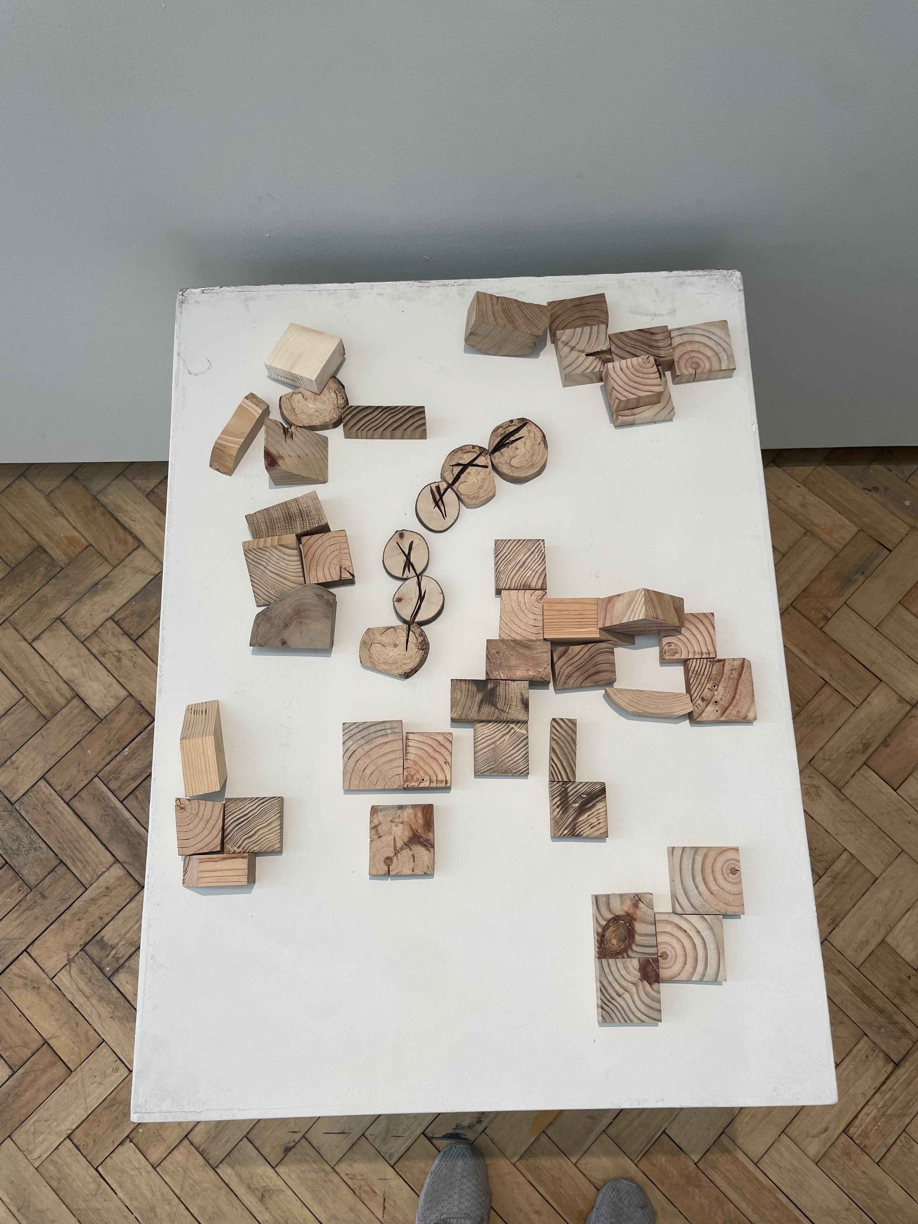 Installation: Wooden blocks and interactive temporal lines (Jogo).