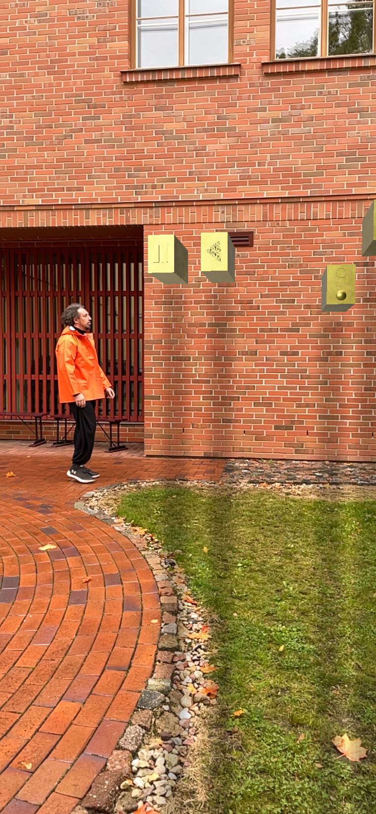 We opted for an Augmented Reality (AR) and 3D rendering approach, installing a digital artwork within the public space. The piece consisted of virtual pillars representing the fundamental values of the European Union, as established in Article 2 of the EU Treaty: human dignity, freedom, democracy, equality, the rule of law, and respect for human rights, including the rights of minorities.