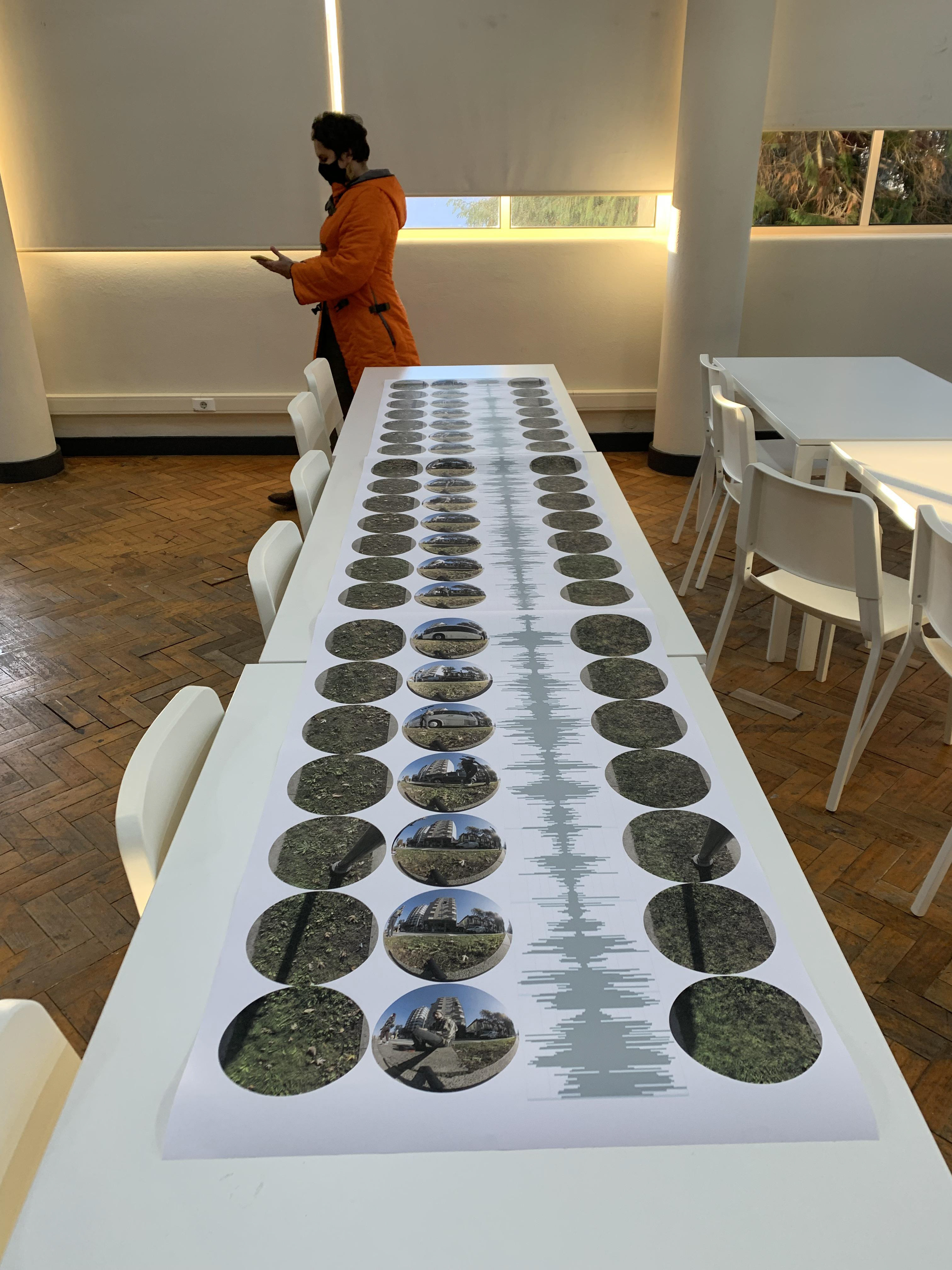 The final output is a large-scale graphic work (4 meters x 60 cm). It presents a continuous sequence where the raw earth, the visual frequency of the recorded audio (waveform), and the digitally gardened landscape coexist. This work challenges the invisibility of residual urban spaces, transforming a neglected boundary into a territory of aesthetic and sonic investigation.